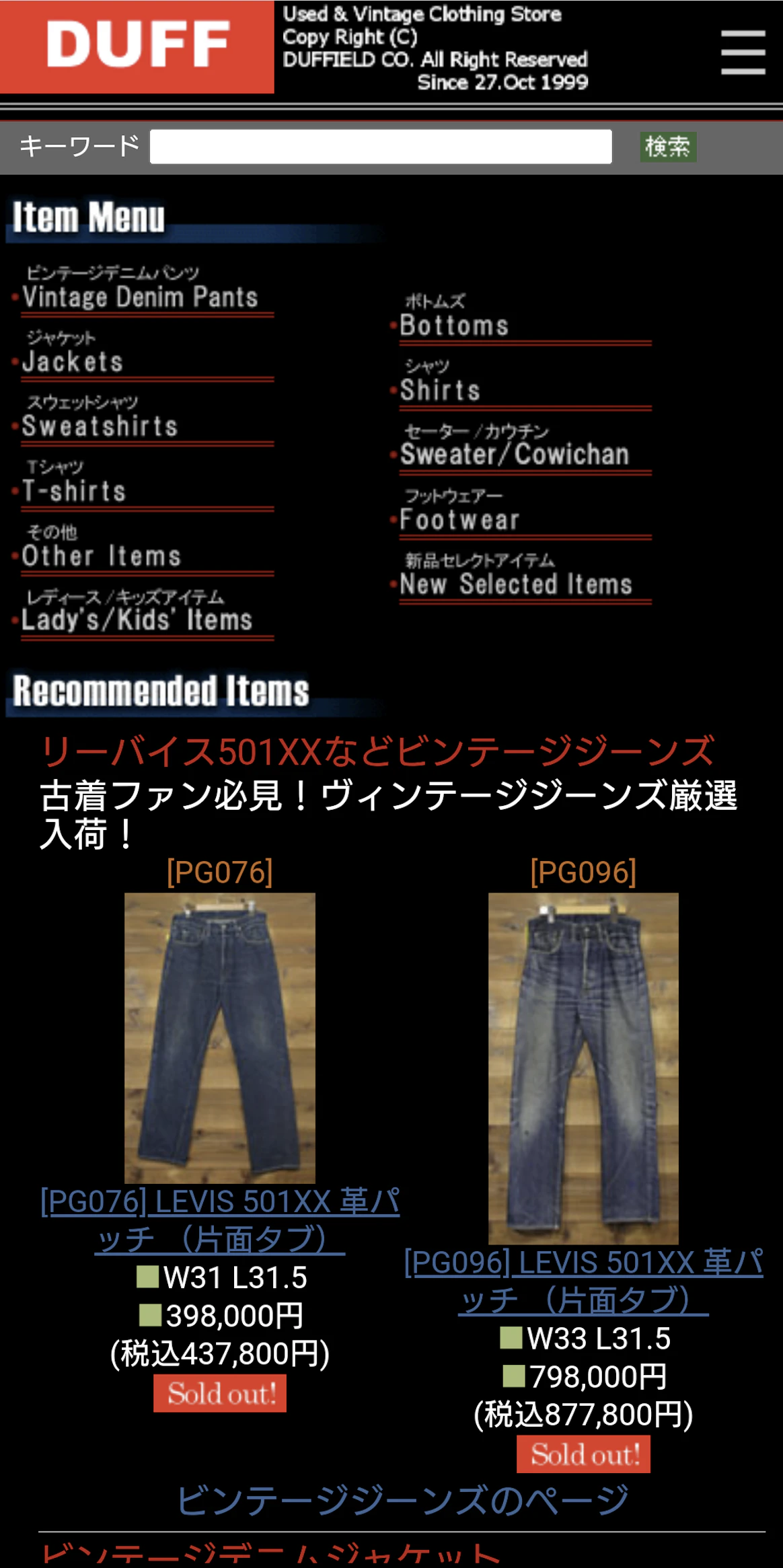 ヴィンテージジーンズをオンラインで探すなら、古着屋DUFFは外せません。