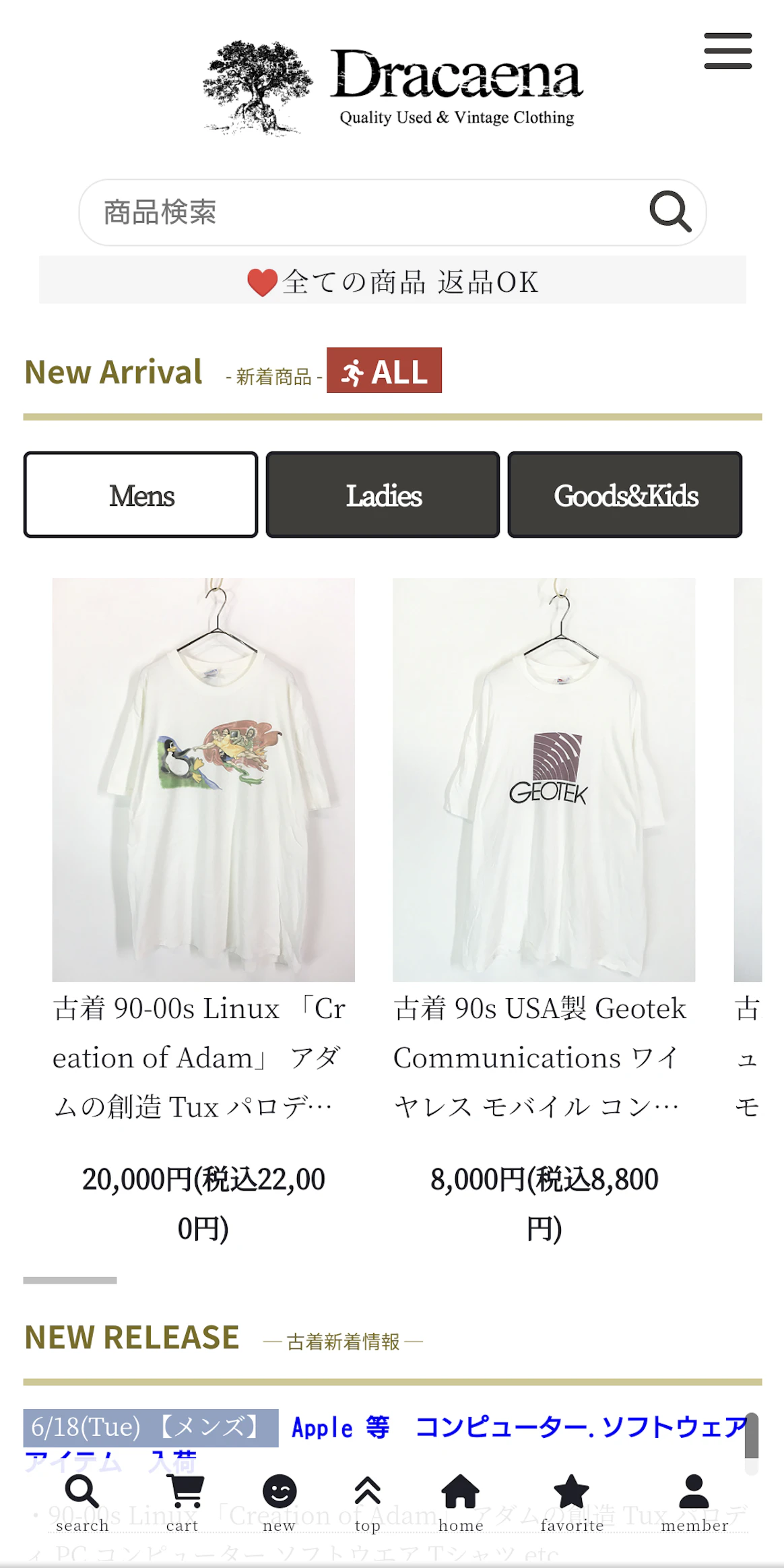 レディース古着に定評があるドラセナも、人気のある古着オンラインショップの内の一つです。