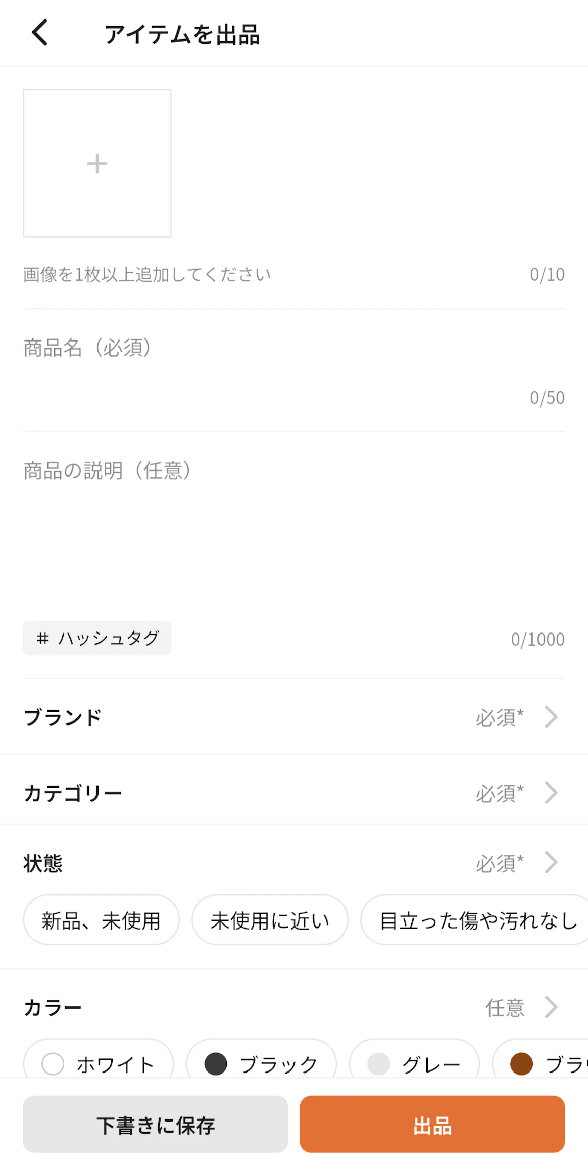 項目が多く感じるかもしれませんが、難しい言葉で入力する必要はありませんし、ブランド以降の項目は選択肢から選ぶだけなので難しくありませんよ。