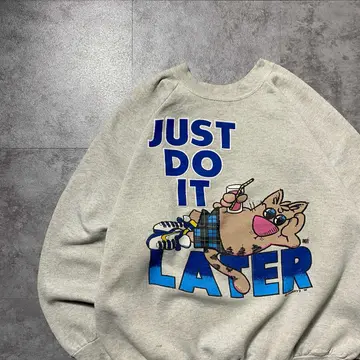 90s フルーツオブザルーム ナイキパロディ プリント Just do it Later スウェット