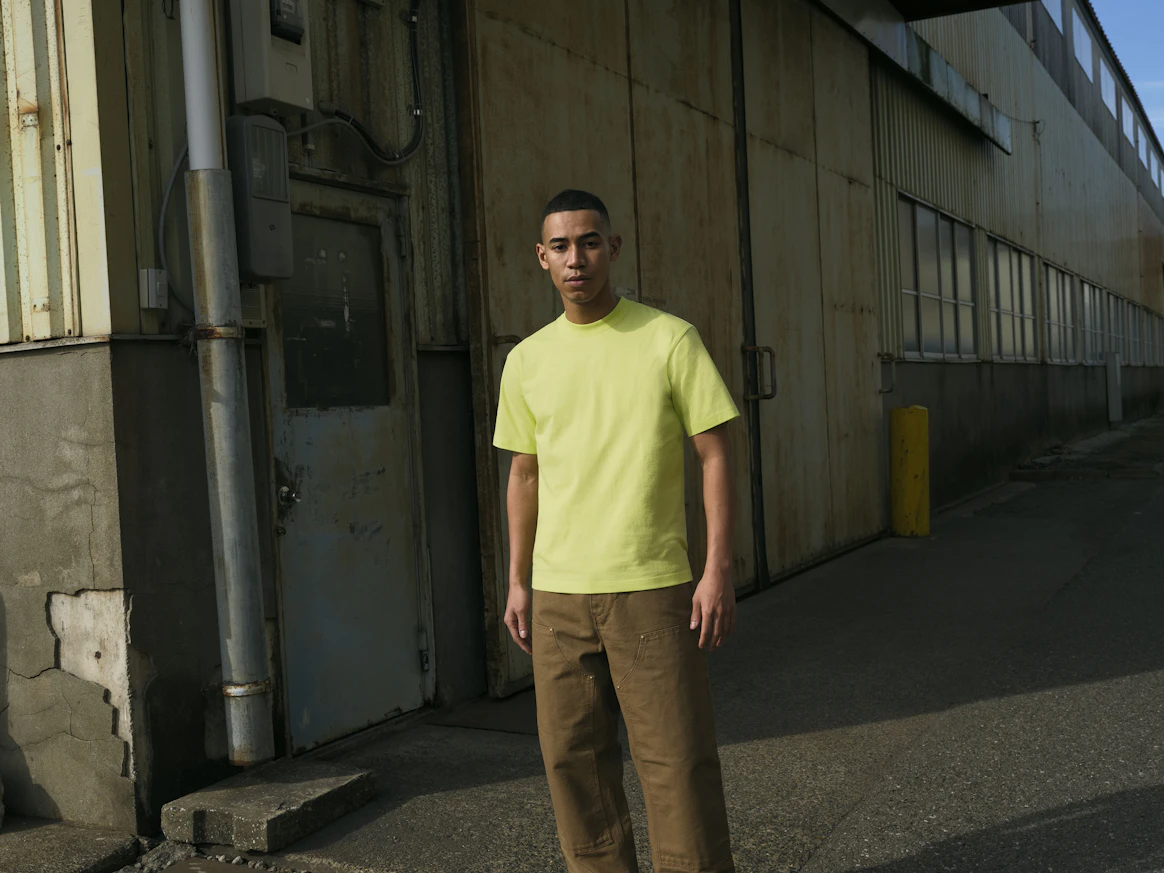 Levi'sのブーツカットデニムとBEEFY-Tだけのシンプルな着こなしもいいですし、白の半袖シャツにあえてこのド派手な色合いを差し込んでみるのもいいでしょう。