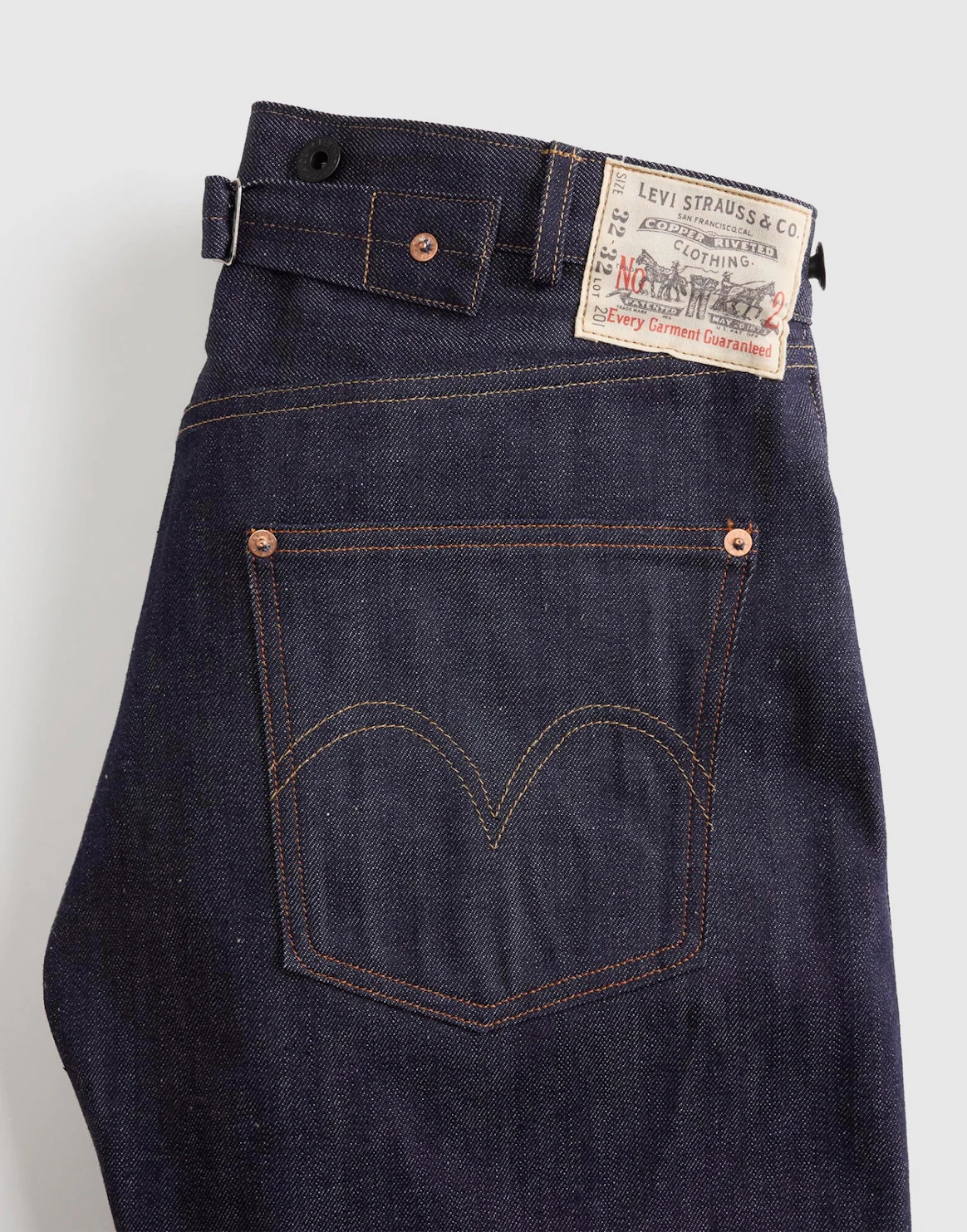バックパッチをレザーではなく布にしたり、少し薄めのNO.2デニムという生地を使用したりといったように、コストカットを行って生み出され、当時はトップスの「LOT 213」と共に人気を博したと言われています。