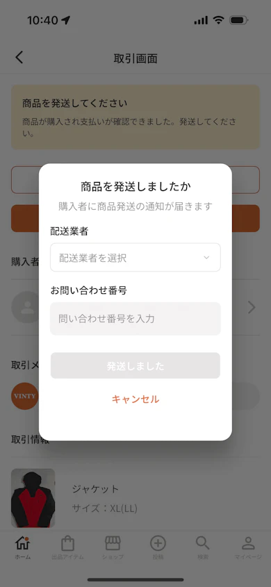 VINTYで出品した商品が購入された場合、以下の手順で発送します。