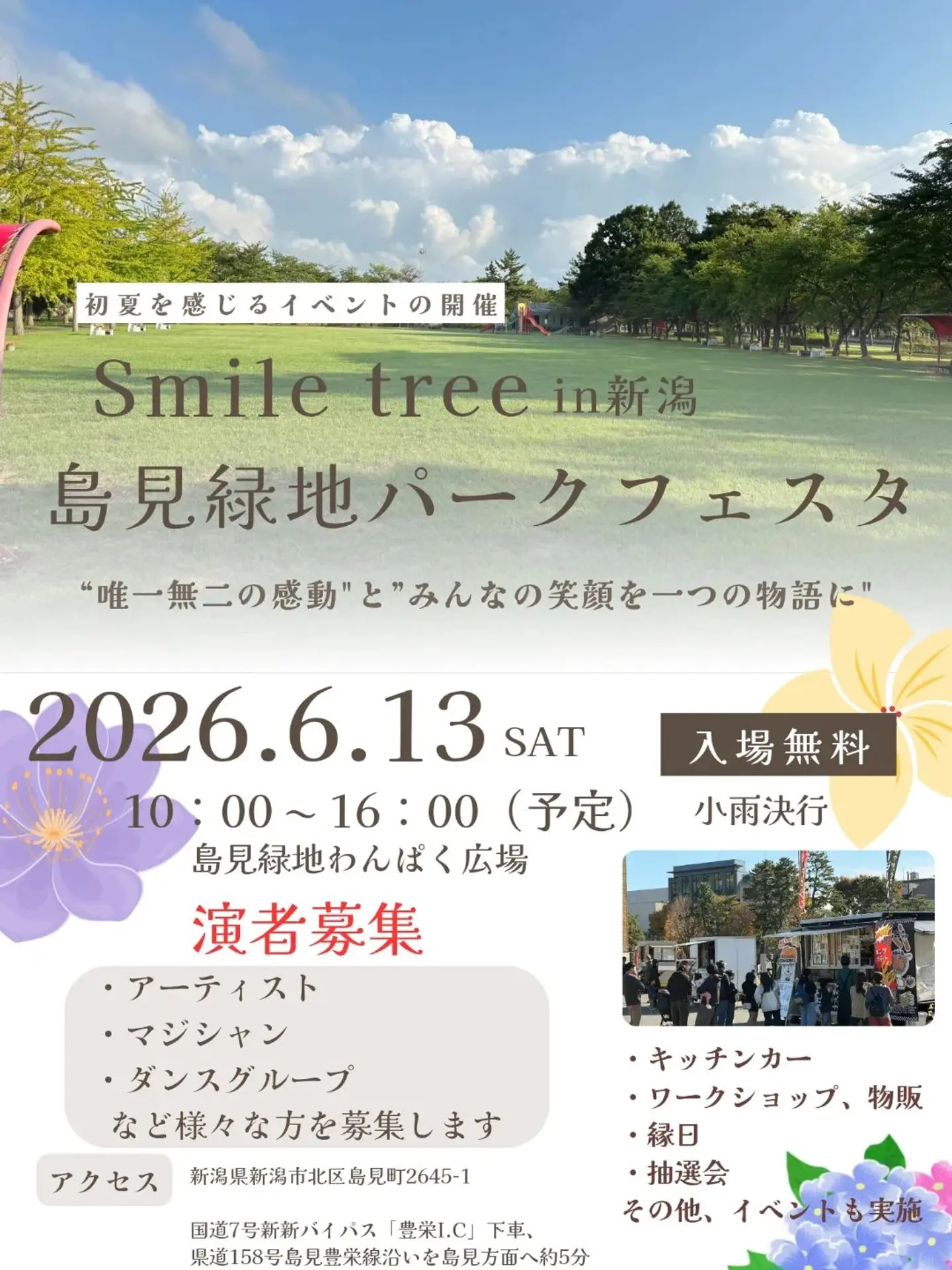 初夏の緑に囲まれた島見緑地で、 「島見緑地パークフェスタ」を開催します🌿 お腹を満たすキッチンカーの絶品グルメを始め、 親子で楽しめるワークショップ、 どこか懐かしい縁日や、ドキドキの抽選会も予定しています。 (公式Instagramより引用)