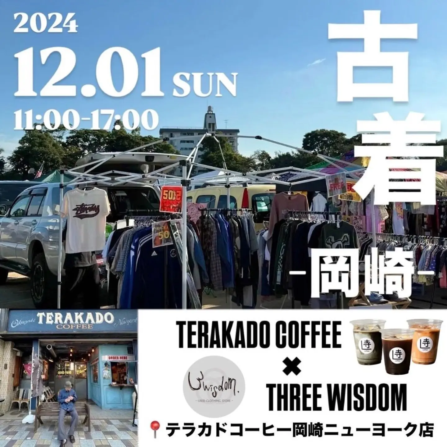 岡崎市にある、テラカドコーヒーニューヨーク店さんでthree wisdomの古着を置かさせていただきます! テラカドコーヒーさんも通常営業してるので是非お越し下さい!