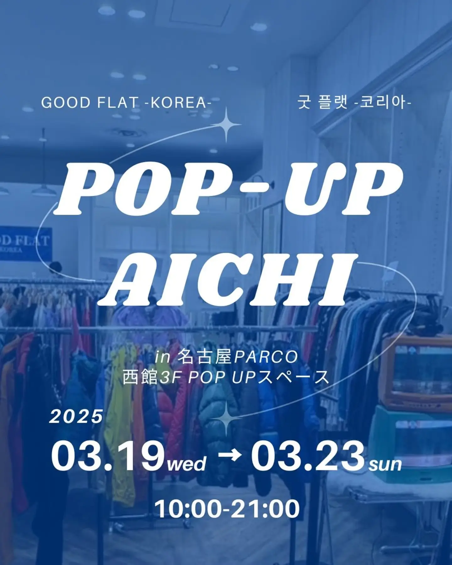 門店グッドフラットコリアが愛知県名古屋市にある名古屋PARCO店に新規オープン GOOD FLAT-KOREA-(グッドフラットコリア)は 韓国国内で流通している若者に人気な古着で構成された『韓国古着専門店』 現在日本で流通している古着店舗では見えない韓国ブランドで構成されているのが特徴。 日本人バイヤーが、日本で流行している最新のファッショントレンドを取り入れ、日本人の好みにあったセレクトを現地で行っています。 今回は、家族で楽しめる古着屋さんをコンセプトとして、『お店の入りやすさ』『商品の買いやすさ』『商品の品質』を追求し、家族をはじめ今まで古着に触れてこなかったライト層のお客様にも、楽しんで空間創りを行っております。 (Instagramより引用)
