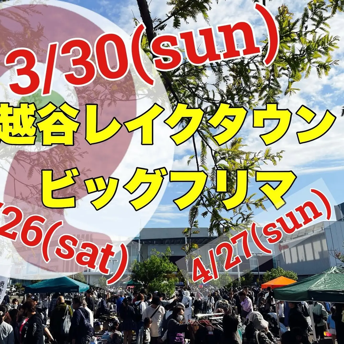 ラズベリー主催 越谷レイクタウン ビッグフリマ 日本最大級の敷地面積を誇るイオンレイクタウンや マンション郡に囲まれた越谷レイクタウン駅前広場で開催します! 入場無料 掘り出しモノを探しに行こう! ラズベリー主催 越谷レイクタウンビッグフリマ ご参加には『予約』が必要です。 【開催日】 3月30日(日)第①日目 4月26日(土)第②日目 4月27日(日)第③日目 【搬入時間】 8時頃~ 9時頃 【開催時間】 9時 ~15時まで 【出店規模】各250組 【雨荒天】中止 【最寄り駅】越谷レイクタウン駅 徒歩30秒 (Instagramより引用)