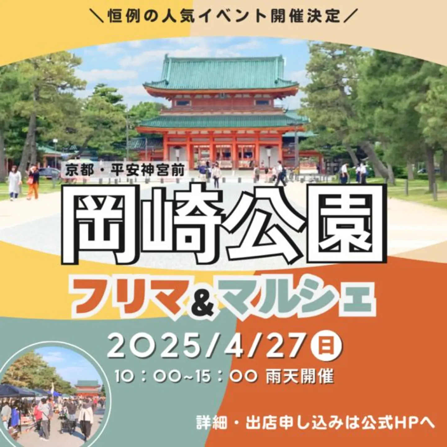 京都の人気観光スポット平安神宮前・岡崎公園での恒例イベントです! 古着や家庭の不用品、雑貨などのフリーマーケット&ハンドメイド雑貨などのマルシェです★ フリマでお宝探し、素敵なハンドメイド雑貨との出会い、おいしいキッチンカーを堪能しましょう♪ ● ● 出店者様大募集 ● ● まだまだ使えるけど断捨離したいものや、 自慢のハンドメイド品を販売しませんか? 募集要項をお読みいただき、お申込みをお待ちしております♪ ■開催日時:2025年4月27日(日) 10:00~15:00 (フリマナビより引用)