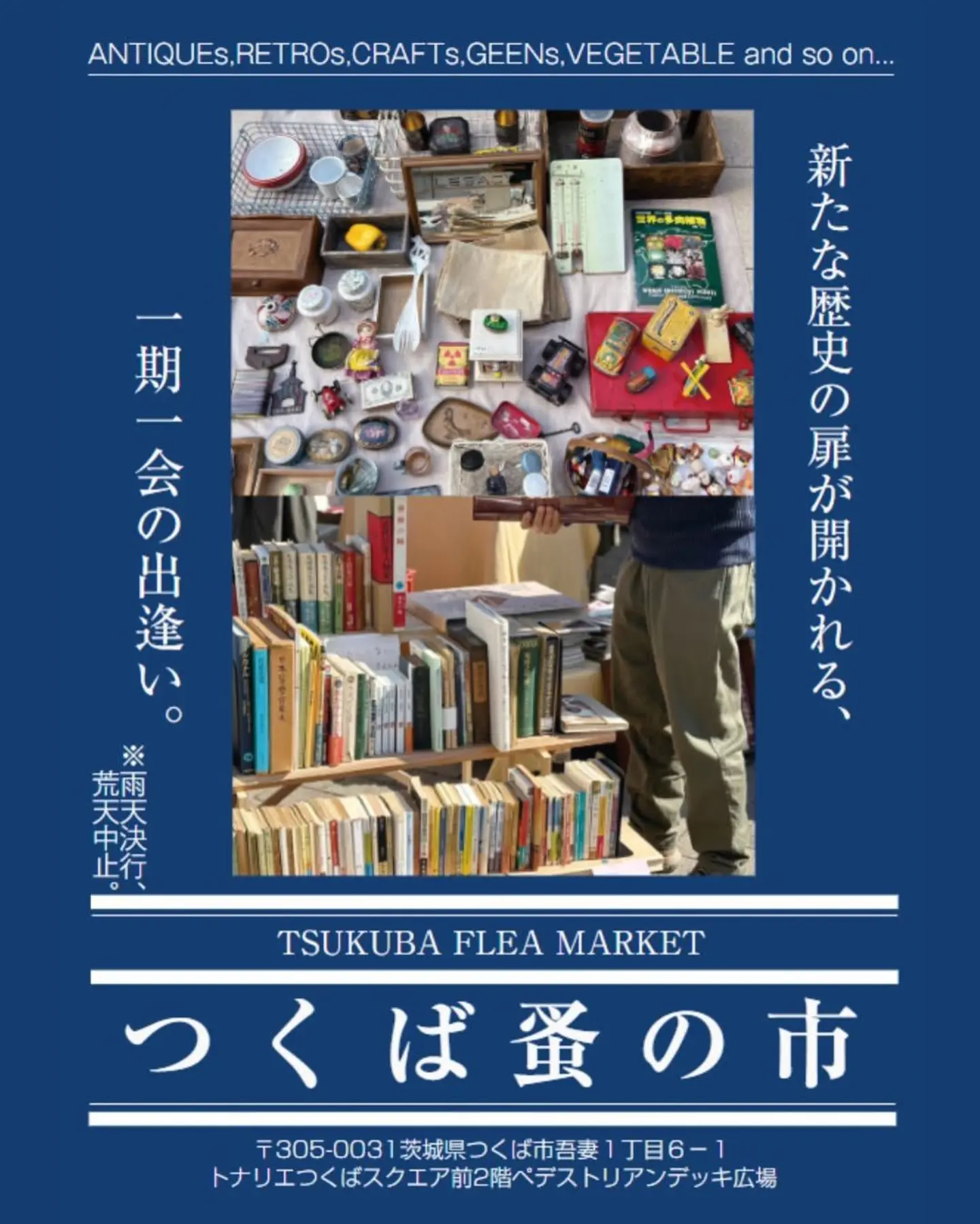 【 皐月「つくば蚤の市」店舗配置図公開。】 毎月第三土日に開催している「つくば蚤の市」。出店店舗配置図&出店店舗一覧を公開。今回も、あらゆるジャンルの店舗様に全国各地からご参加いただけますこと、心より御礼申し上げます。 出店店舗一覧▷ @tsukubanominoichi ※トップページリンク先 「出店店舗一覧」 「出店店舗配置図」より✔️ 第一日目110店 (※満員御礼。) 第二日目110店 (※満員御礼。) 今回は、つくばフェスティバルと同日開催です。 大いに盛り上がること間違いありません! 皆さまのお越しをお待ちしております。 ▽▼▽▼▽▼▽▼▽▼▽▼▽▼▽▼▽▼▽▼ 皐月「 つくば蚤の市 」 (日時)2025/5/17(土)18(日)10:00-16:00(予定) (会場) トナリエつくばスクエア前2階ペデストリアンデッキ 〒305-0031 茨城県つくば市吾妻1丁目6−1 (主催)イキナマーケット @ikinamarket ※入場無料。雨天決行、荒天中止。 (Instagramより引用)