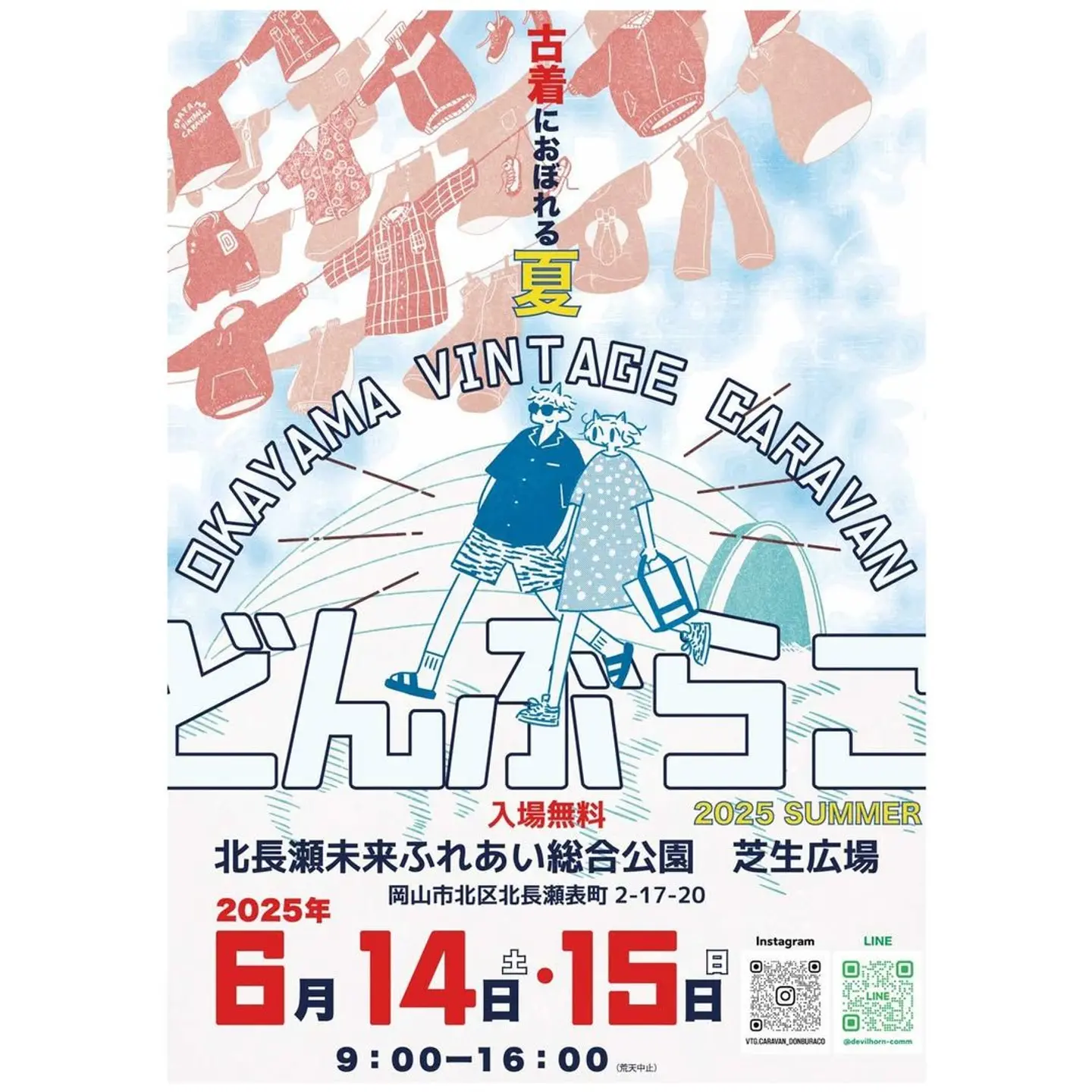 かやま VINTAGE CARAVAN どんぶらこ 2025 SUMMER🌴 2025年6月14日(土)15(日)開催決定!! どんぶらこはプロ・アマ関係なく参加できる古着特化のフリーマーケットです! まだ出店できますので是非プロフィール下ハイライトから申し込みしてね!! (Instagramより引用)