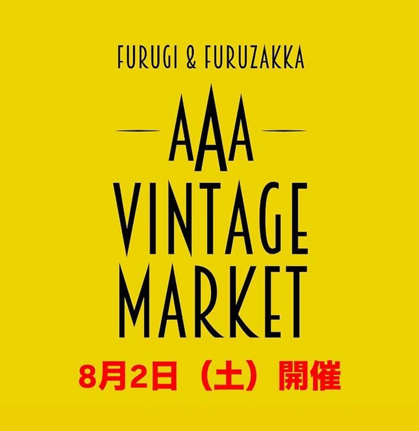 【AAA VINTAGE MARKET】 8月2日(土)開催 会場 上奥富運動公園(埼玉県狭山市上奥富999) 9時前〜15時頃(雨天開催) 入場無料 無料大型駐車場3ヶ所あり 集え‼︎ ヴィンテージ好き‼︎ (Instagramより引用)