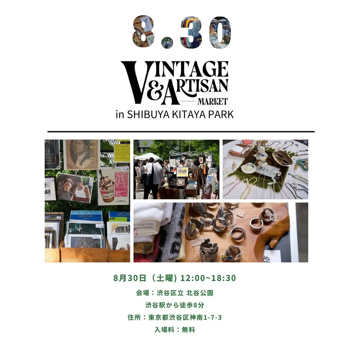Vintage(古着や古雑貨) & Artisan(芸術家、職人) が一堂に会するマーケット。 アパレル、古着、ヴィンテージアイテム、ハンドメイドアクセサリー、植物、雑貨など、こだわりの詰まったアイテムを扱うショップが渋谷に集まります。 【開催日】 開催日:2025年8月30日(土) 開催時間:12:00〜18:30 入場料:無料 (Instagramより引用)