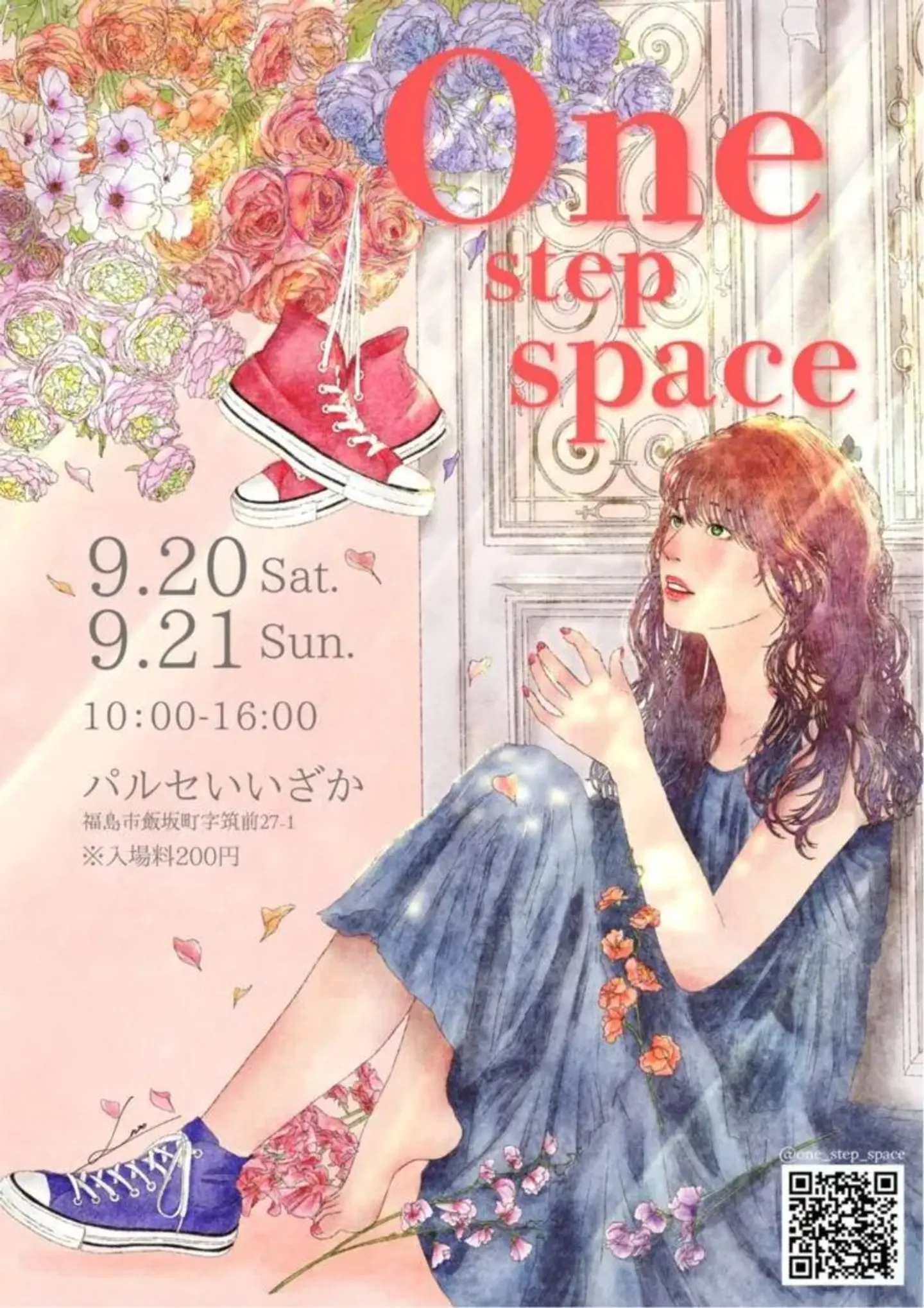 One step space 9/20 Sat. 9/21 Sun. 10:00〜16:00 パルセいいざか 福島県福島市飯坂町字筑前27-1 入場料 ¥200 ※小学生以下無料 駐車場 *パルセいいざか敷地内駐車場 *いちい飯坂店 (向かい) 臨時駐車場 (無料シャトルバスあり) ※15:00パルセ発が最終になります。 *飯坂赤川橋パーキング(有料) ~~~~~~~~~~~~~~~~~~~~~~~~~~~~~~~~~ 一歩の空間 「福島で」 「飯坂町で」 「パルセいいざかで」 素敵な仲間達が創り出す今までにない空間で、沢山の方々が幸せな時を楽しみ 「また来たい!」「あのイベントに出たい!」 そう想われるイベントを開催する! 主催Kanno工房・福島市観光開発株式会社 のOne stepです。 福島県内外から最高の空間創りに こだわりを持った素敵な仲間達約100店舗が パルセいいざかに集結! クラフト、古道具、アンティーク、古着 アパレル、雑貨、アート、植物 ハンドメイド、ワークショップ フード、スイーツ、ドリンク etc. 男性も、女性も、子供も楽しめる空間です。 フライヤー / 林象 @lnzo__art (Instagramより引用)