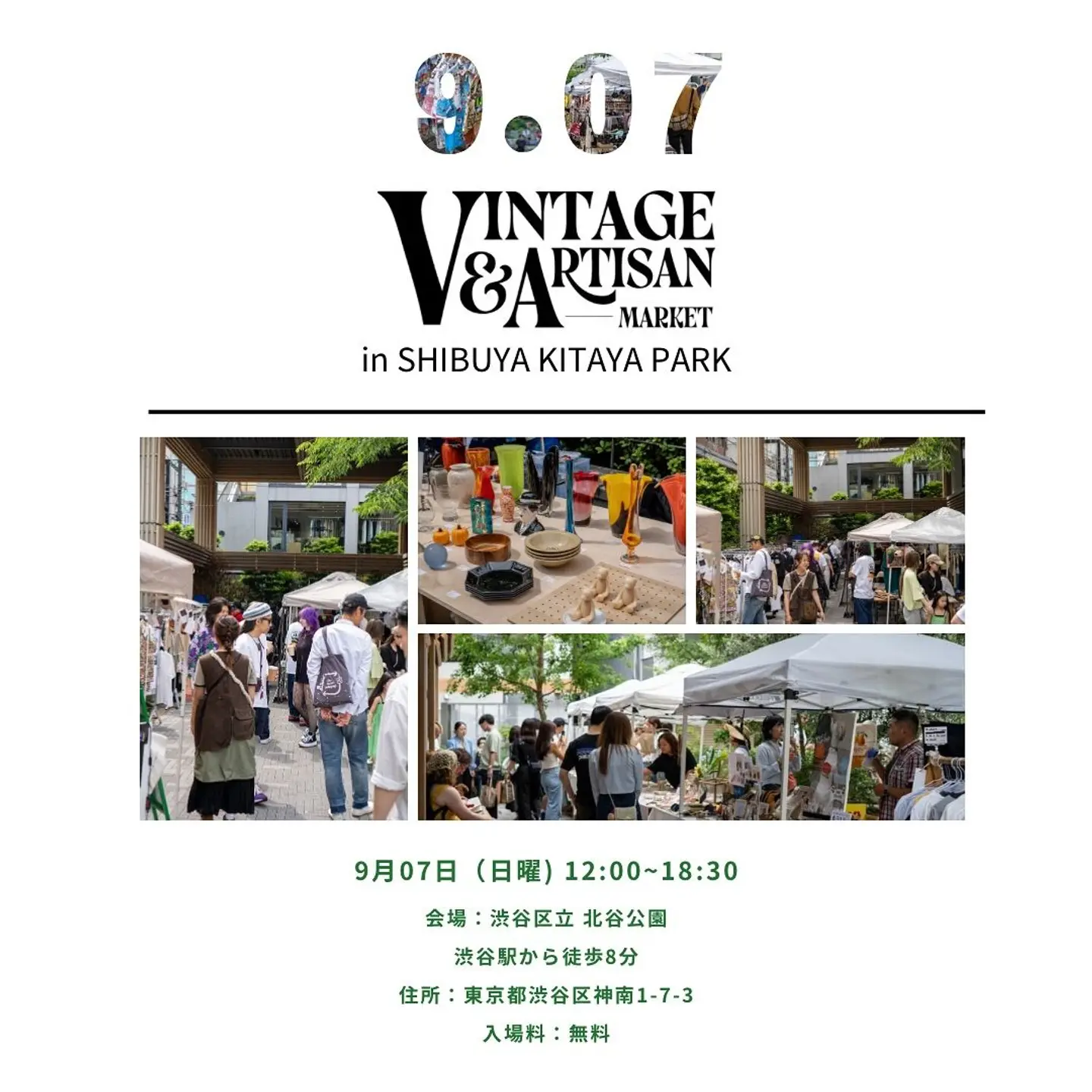 Vintage & Artisan Market in SHIBUYA KITAYA PARK Vintage(古着や古雑貨) & Artisan(芸術家、職人) が一堂に会するマーケット。 アパレル、古着、ヴィンテージアイテム、ハンドメイドアクセサリー、植物、雑貨など、こだわりの詰まったアイテムを扱うショップが渋谷に集まります。 【開催日】 開催日:2025年9月7日(日) 開催時間:12:00〜18:30 入場料:無料 【出店お申し込み方法】 出店をご希望の方は、プロフィールに記載のHPよりお申し込みください。 ※出店は審査制となっております。 【会場】 渋谷区立 北谷公園(東京都渋谷区神南1丁目7-3) 渋谷駅より徒歩8分、原宿駅より徒歩11分