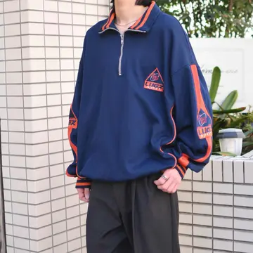 古着 リメイク ドローコード ハーフジップ スウェット デザイン トレーナー