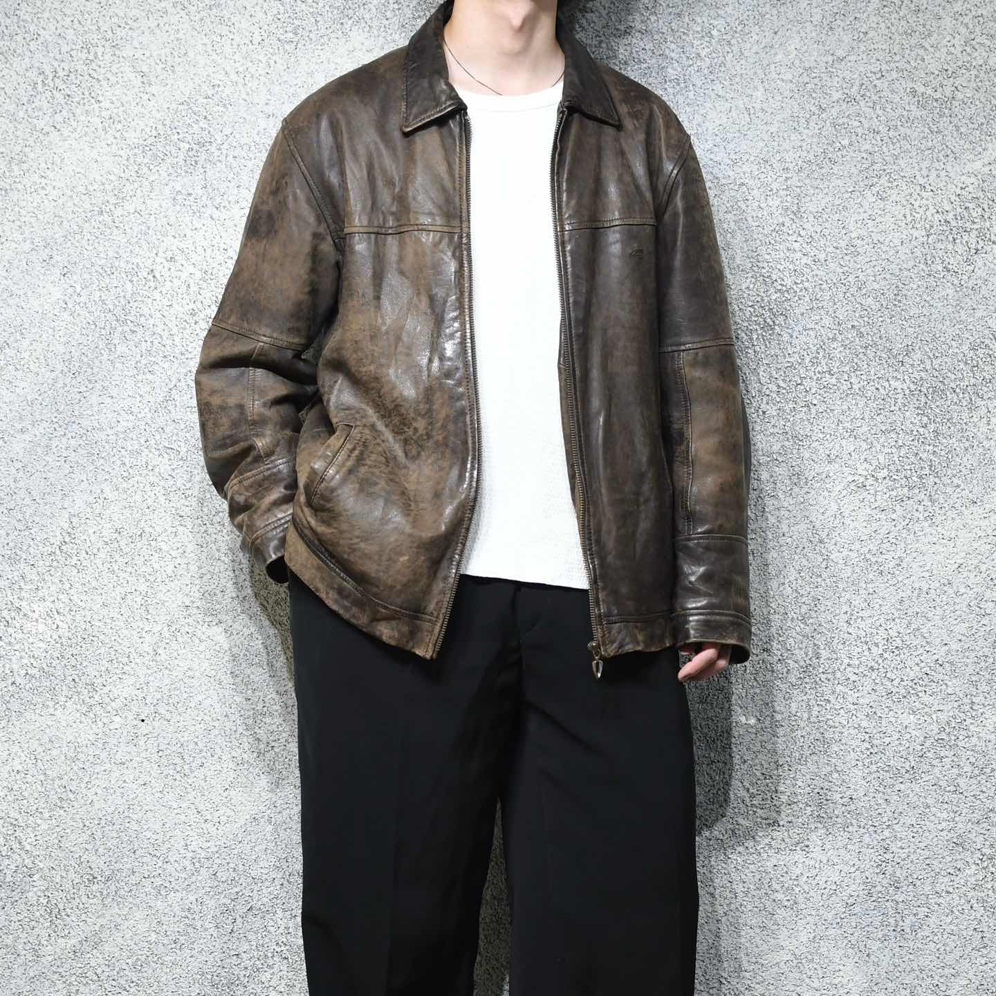 古着 ラムレザー とろみ レザージャケット ブラウン フェード エイジング ライダース