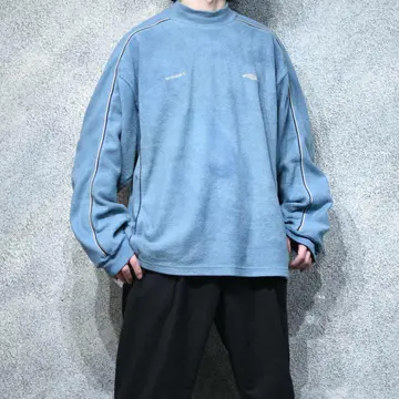 古着 UMBRO モックネック フリース デザイン 水色 ライトブルー