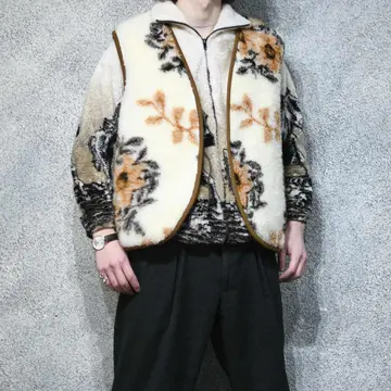 古着 ボタニカル柄 ボアベスト ベスト デザイン