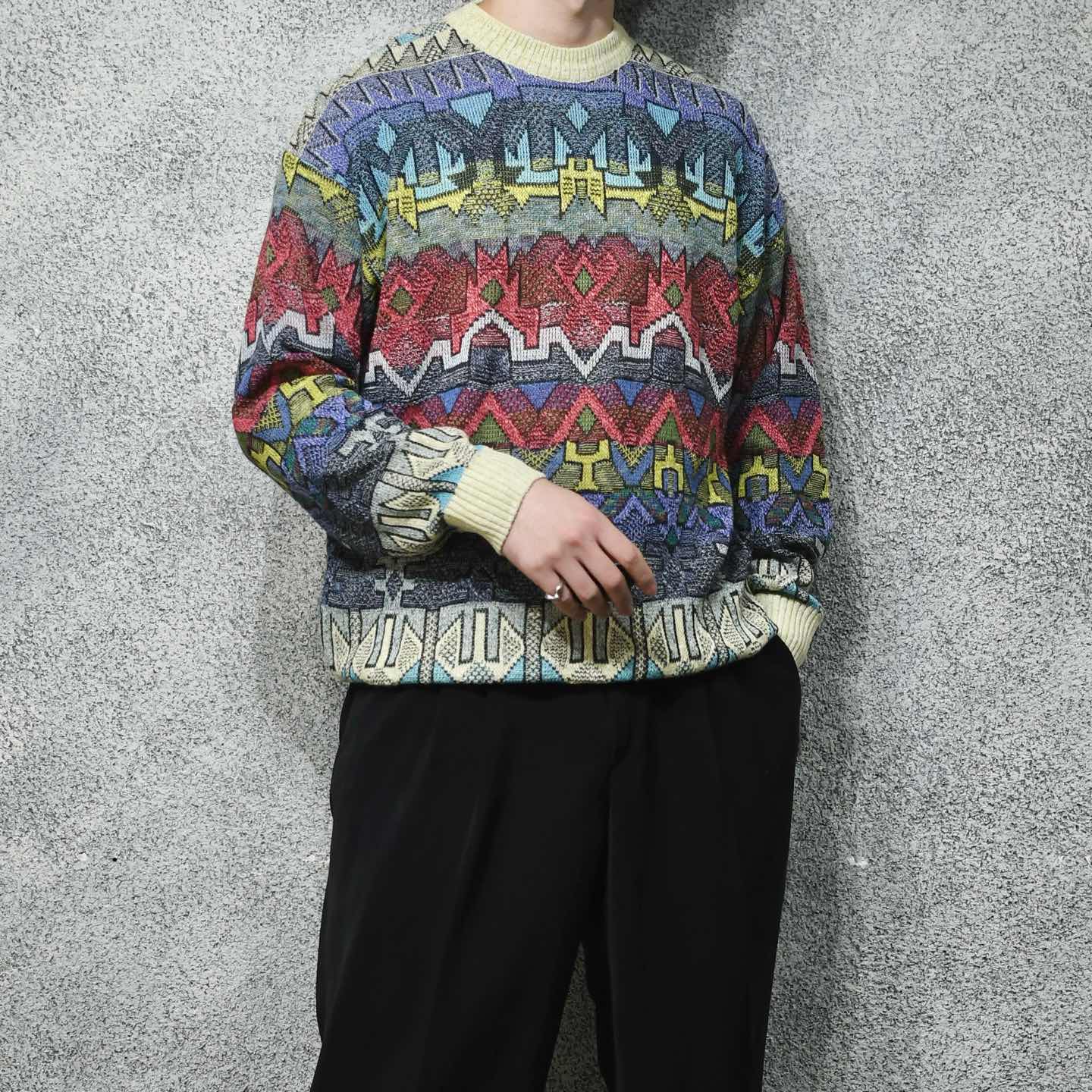 古着 イタリア製 幾何学模様 デザインニット ニット セーター アクリルニット