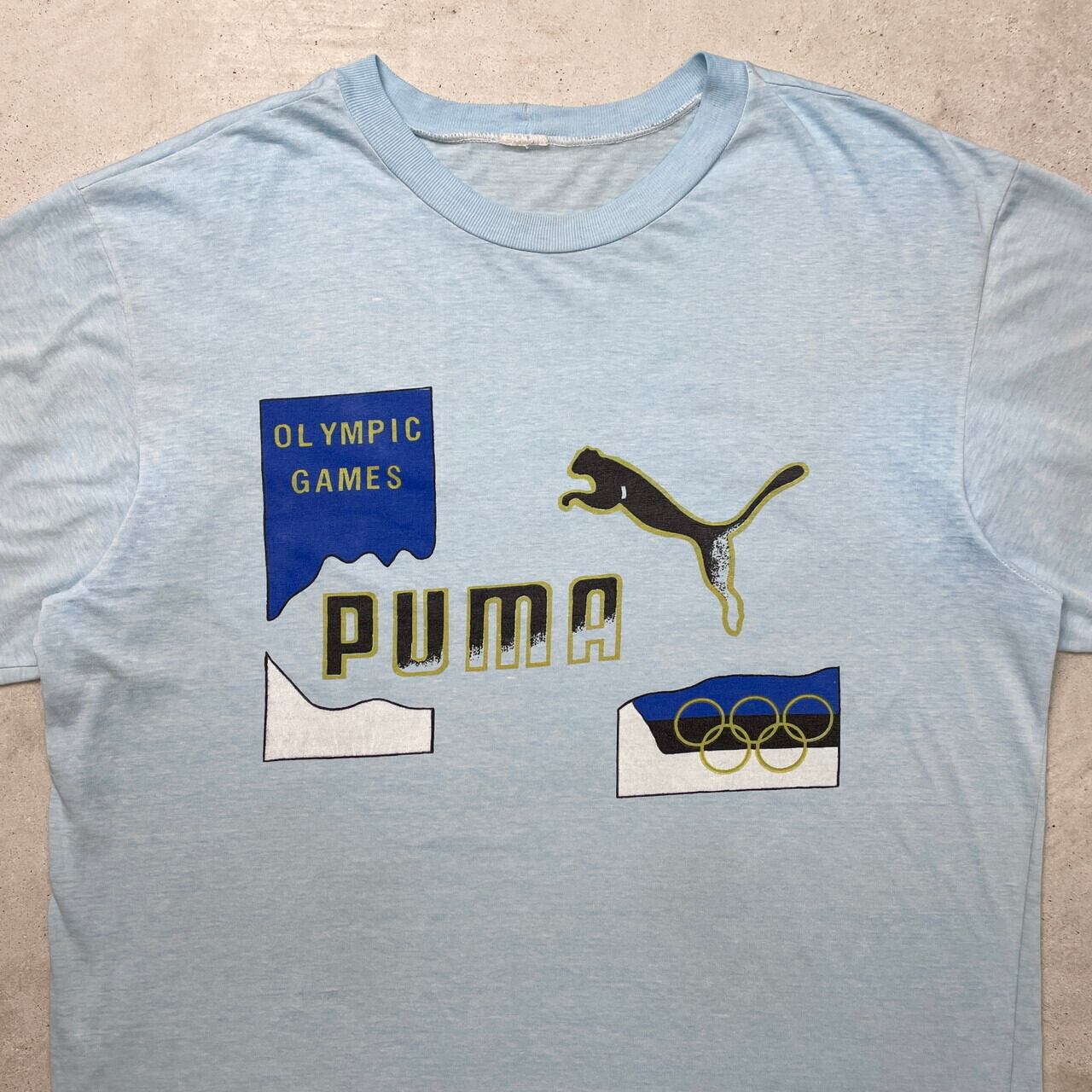 80年代 PUMA プーマ OLYMPIC GAMES 染み込みプリントTシャツ ロゴプリント メンズXL相当