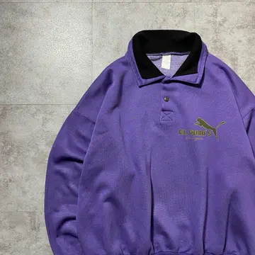80's 90's PUMA プリント ヘンリーネック 襟付き パープル スウェット トレーナー