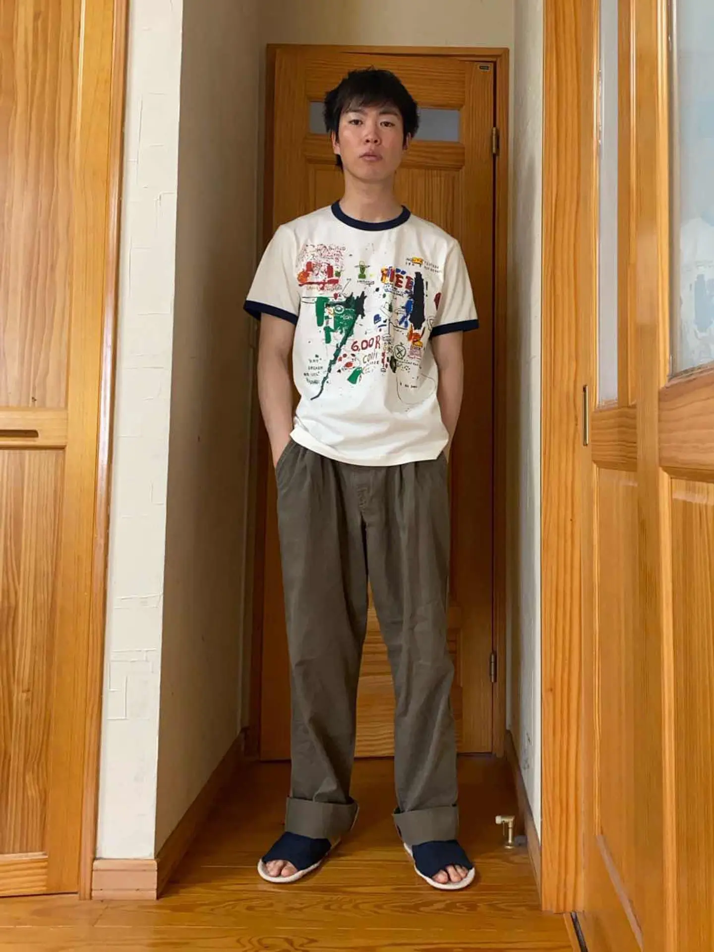 いなたい、田舎の古着好きコーデ とか言ってtシャツは今季のUNIQLOバスキアt 古着っぽさあるから🩷