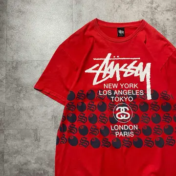 stussy ステューシー ワールドツアー 8ボール ランダムプリント レッド Tシャツ