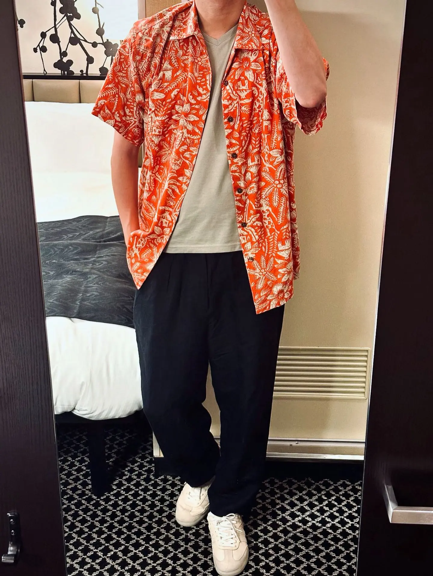 赤のアロハシャツ、グレージュのTシャツ、ブラックのリネンパンツ、ベージュのスニーカーを合わせた夏らしいコーデ。 「古着で行こか。」さんで買ったアロハシャツでコーデ組んでみました。 最近なんとなくLL.BEANのアイテムが気分なので古着屋さんに行っても目についてしまいます。 でもアロハシャツはあまり着ないですが意外と良い感じで良かったです。 トップス:#nanouniverse アウター:#llbean パンツ:##morrisandsons シューズ:#adidas #メンズコーデ #メンズファッション #トレンド #夏コーデ #古着 #服好きな人と繋がりたい #ファッション好きな人と繋がりたい #オシャレさんと繋がりたい #キレイめカジュアル #大人カジュアル #今日のコーデ #古着mix #古着ディグ #アロハシャツ #リネンパンツ #古着で行こか #アメカジ