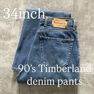 【Size34】90s ティンバーランド ジップフライ レザーパッチ デニムパンツ ジーンズ