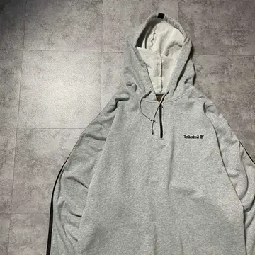 90's Timberland ティンバーランド 刺繍ワンポイント ハーフジップ グレー パーカー