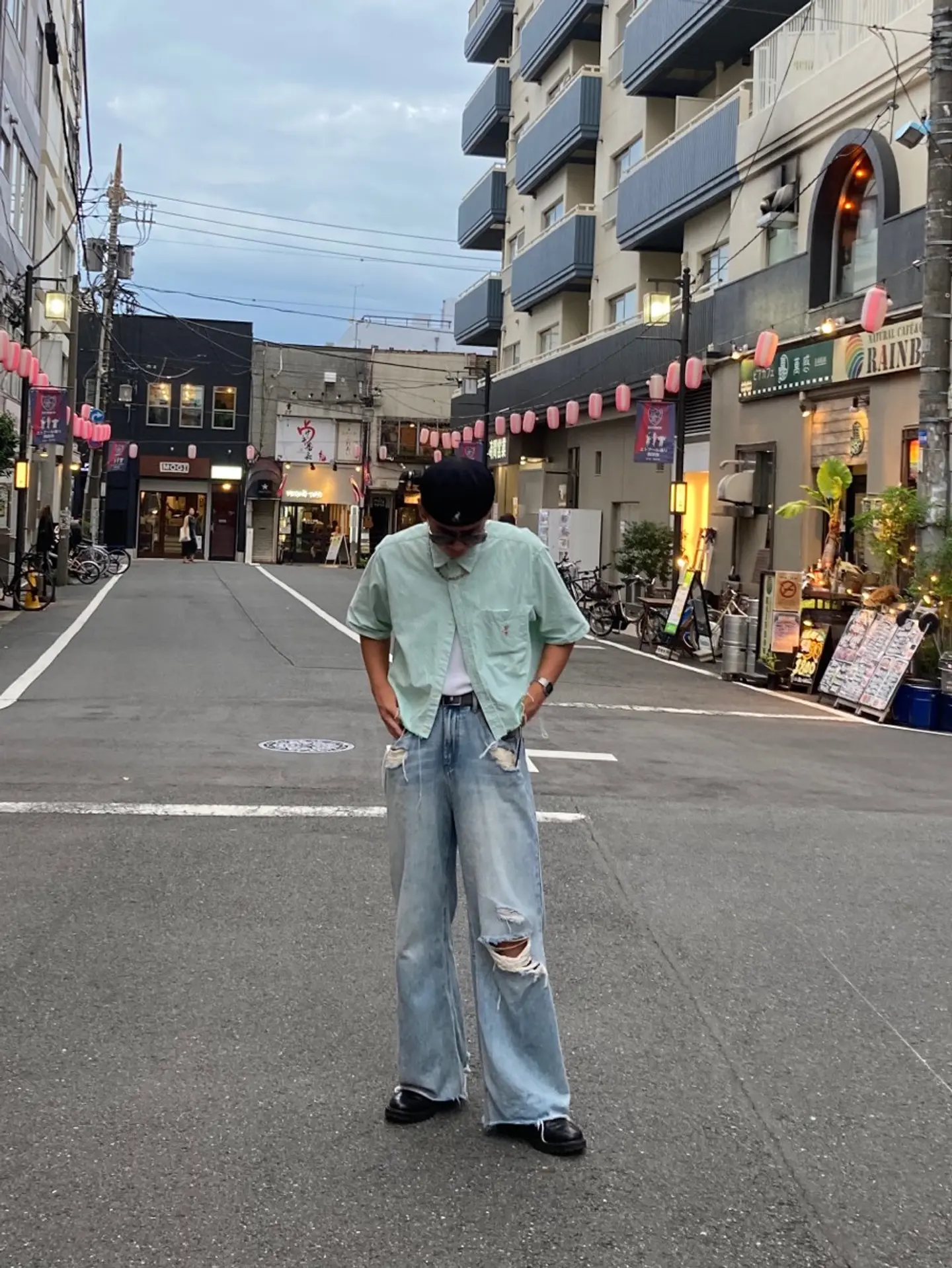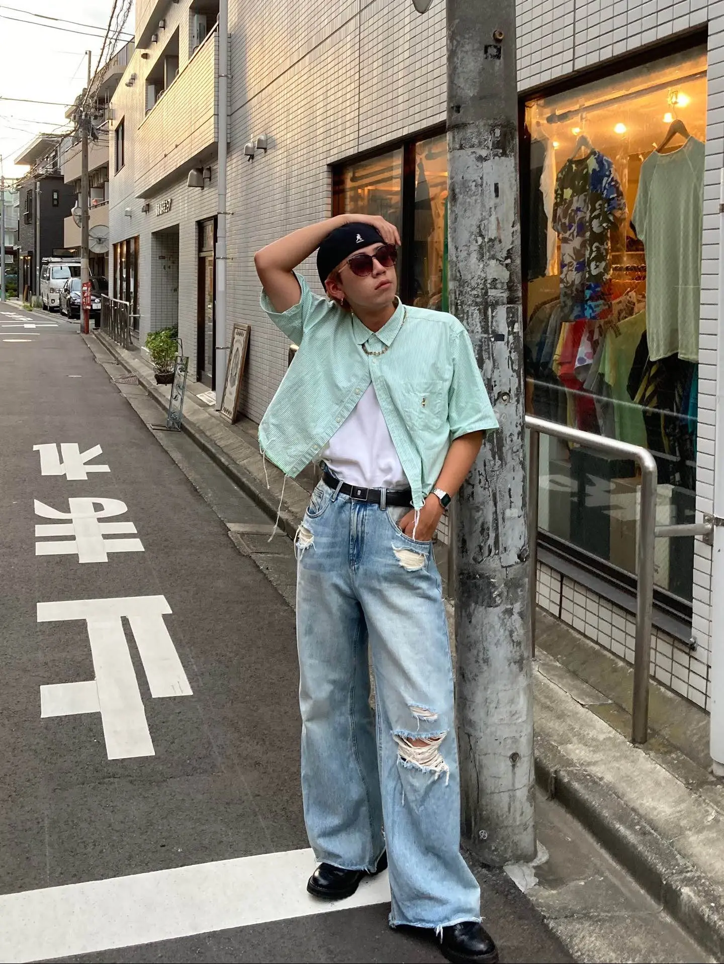 シャツは自分で切りました ほつれ具合が最高で気に入ってます^_^