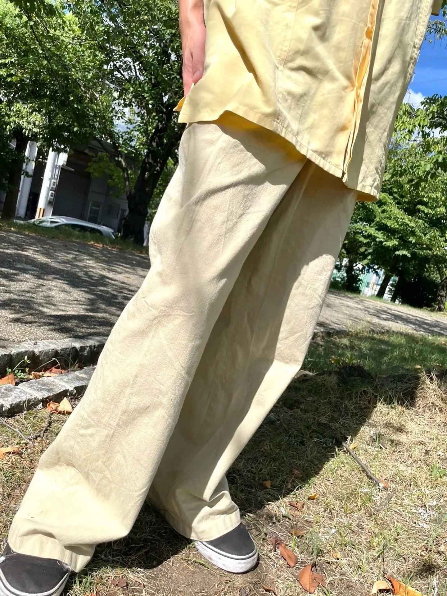昭和レトロなデザインのJ.Petermanコットンワイドパンツで、おしゃれな時間旅行を。古着好き必見のアイテムです👖✨