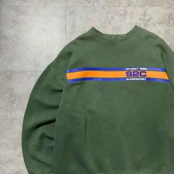 90s old stussy ステューシー ラインプリント グリーン ボックスシルエット スウェット