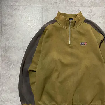 90's old stussy ステューシー 刺繍ワンポイント ハーフジップ カーキ スウェット