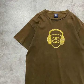 【USA製】90's old stussy モノグラム ヘッドフォン シングルステッチ Tシャツ