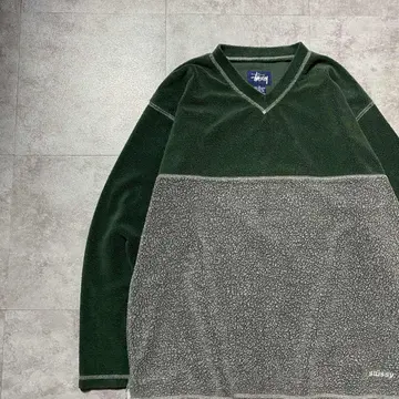 90's old stussy ステューシー 刺繍ロゴ バイカラー Vネック フリーススウェット