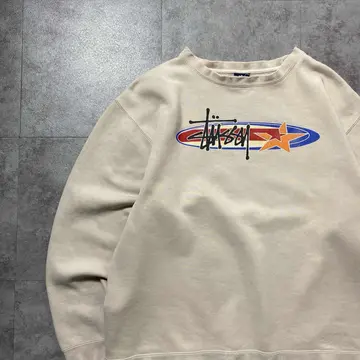 stussy ステューシー バイカラー プリント ブリーチ加工 ベージュ スウェット トレーナー