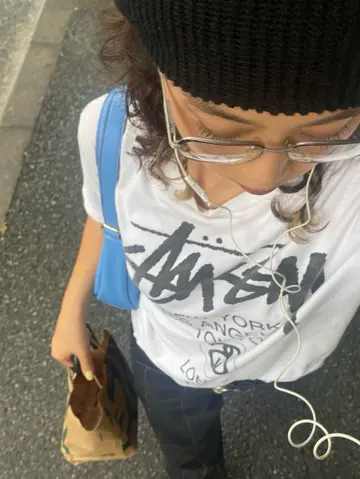 stussy ステューシー アースロゴ プリント ブルー Tシャツ