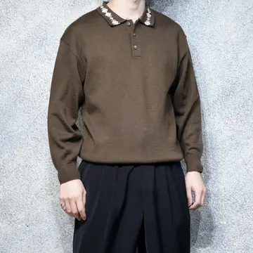 古着 デザインニット ニットポロ ニット セーター アクリルニット ブラウン