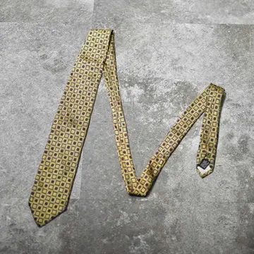古着 vintage シルク ネクタイ タイ 総柄 柄 イエロー 黄色