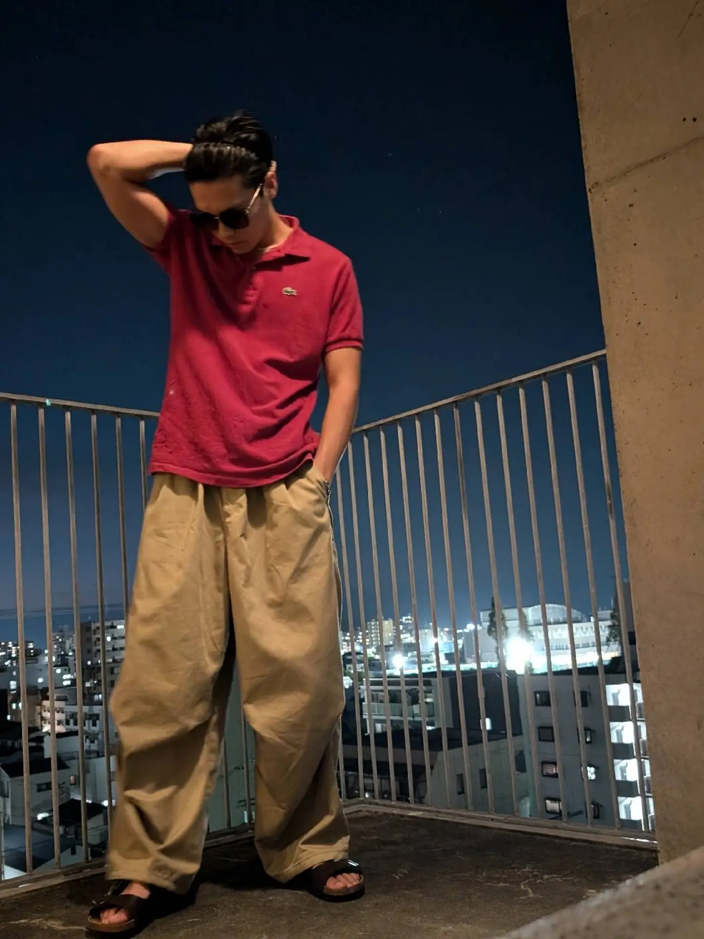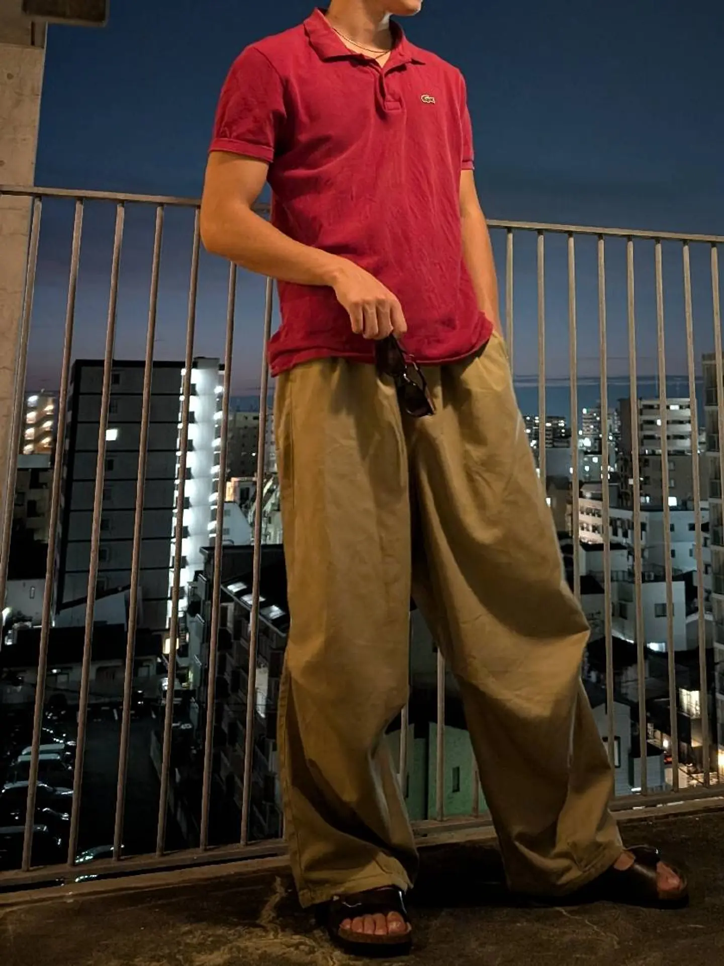 ラコステ チノパン スラックス ワニ アニマル 刺繍 メンズ カーキ ミリタリー