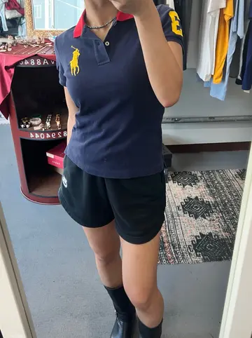 90s ポロバイラルフローレン 刺繍ワンポイント ネイビー ラガーシャツ