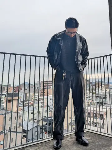 古着 ネイビー ウールスラックス スラックス タックパンツ ワイドパンツ 紺色