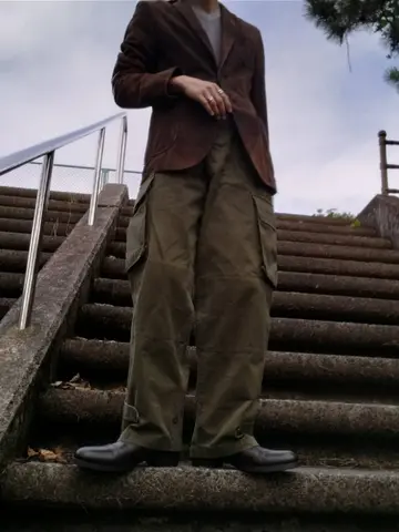 コーデ #alexandermaqueen #アレキサンダーマックイーン #suedejacket #スエードジャケット #margiela #マルジェラ #ニット #エルボーパッチ #frenchmilitary #M47 #フランス軍 #HBT #anndemeulemeester #ブーツ #カーゴパンツ #レザージャケット