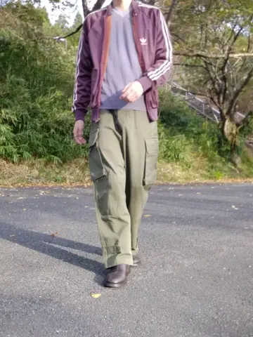 コーデ #adidas #atp #keyrolan #trackjacket #トラックジャケット #frenchmilitary #M47 #フランス軍 #anndemeulemeester #ブーツ #カーゴパンツ #HBT