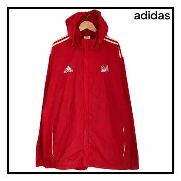 adidas ナイロンジャケット フード レッド サッカー STAFF 4XO