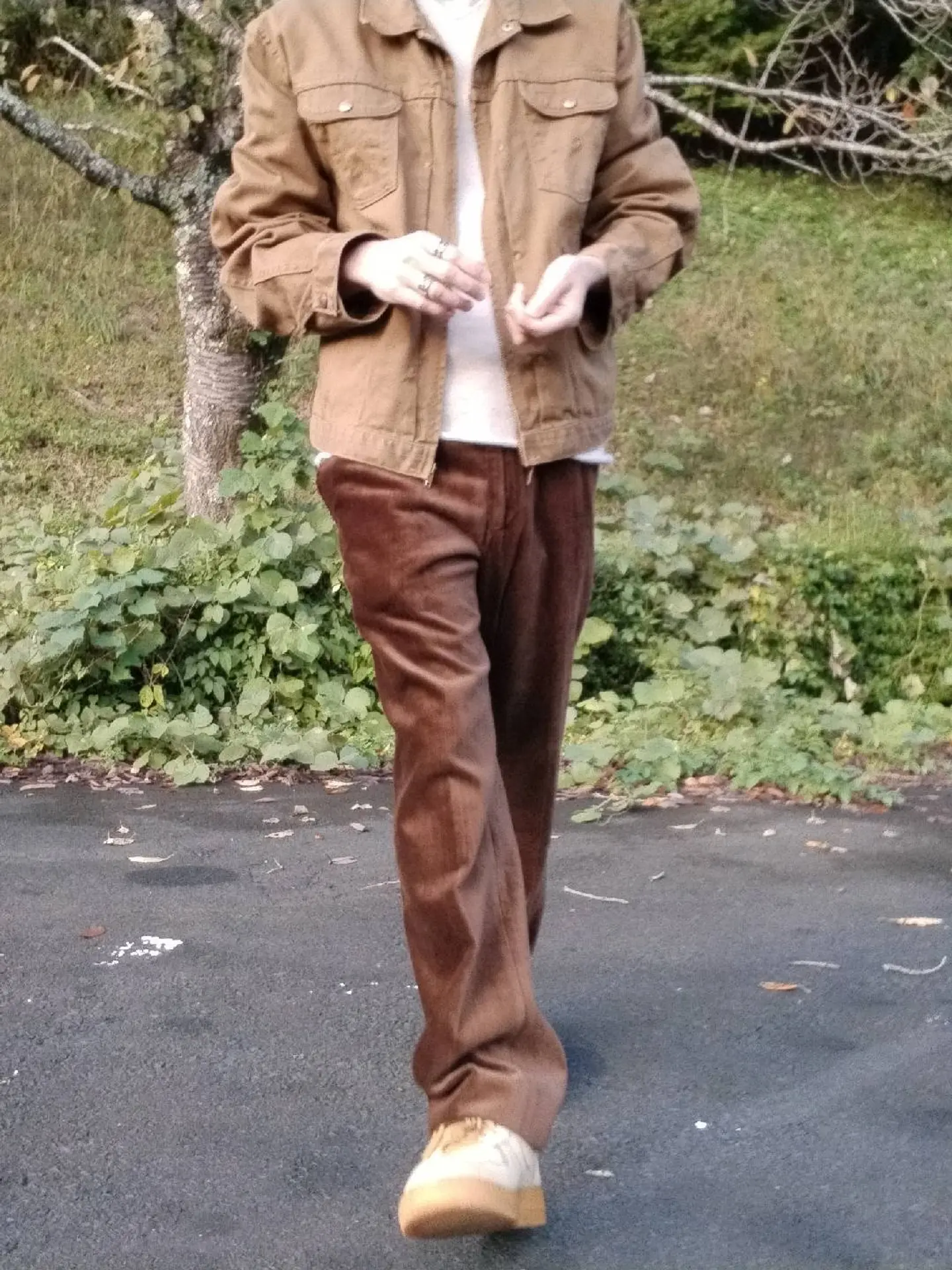コーデ #wrangler #60s #vintagejacket #24MJZ #motherhandartisan #knit #ニット #anndemeulemeester #velvet #ベルベット #ベロア #airforce1 #nike #ヌバック #ナイキ #ブラウンコーデ