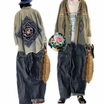 70s 古着 リメイク 黒蟲芸術ビックシャツ ノームコア F