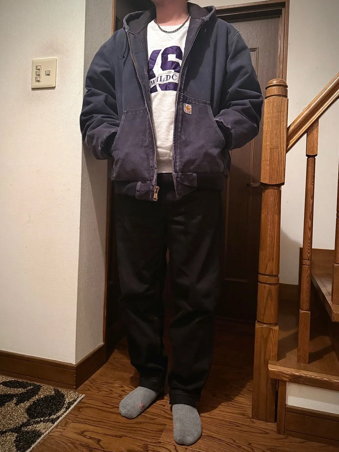 グレーのスウェット、ネイビーのジャケット、ブラックのデニムを合わせたゴリゴリのアメカジスタイル。 見えないポイントで言うと全部アメリカ製って所がこだわりです。 わからんけどこれはいわゆるノームコアになるんかな? そして買ってから初めて着たアクティブジャケットはやっぱり最高です。 トップス:#russell アウター:#carhartt パンツ:#levis アクセサリー:#chromehearts #メンズコーデ #メンズファッション #トレンド #冬コーデ #古着 #服好きな人と繋がりたい #ファッション好きな人と繋がりたい #オシャレさんと繋がりたい #キレイめカジュアル #大人カジュアル #今日のコーデ #古着mix #古着ディグ #スウェット #パーカー #ブラックデニム #アメカジ