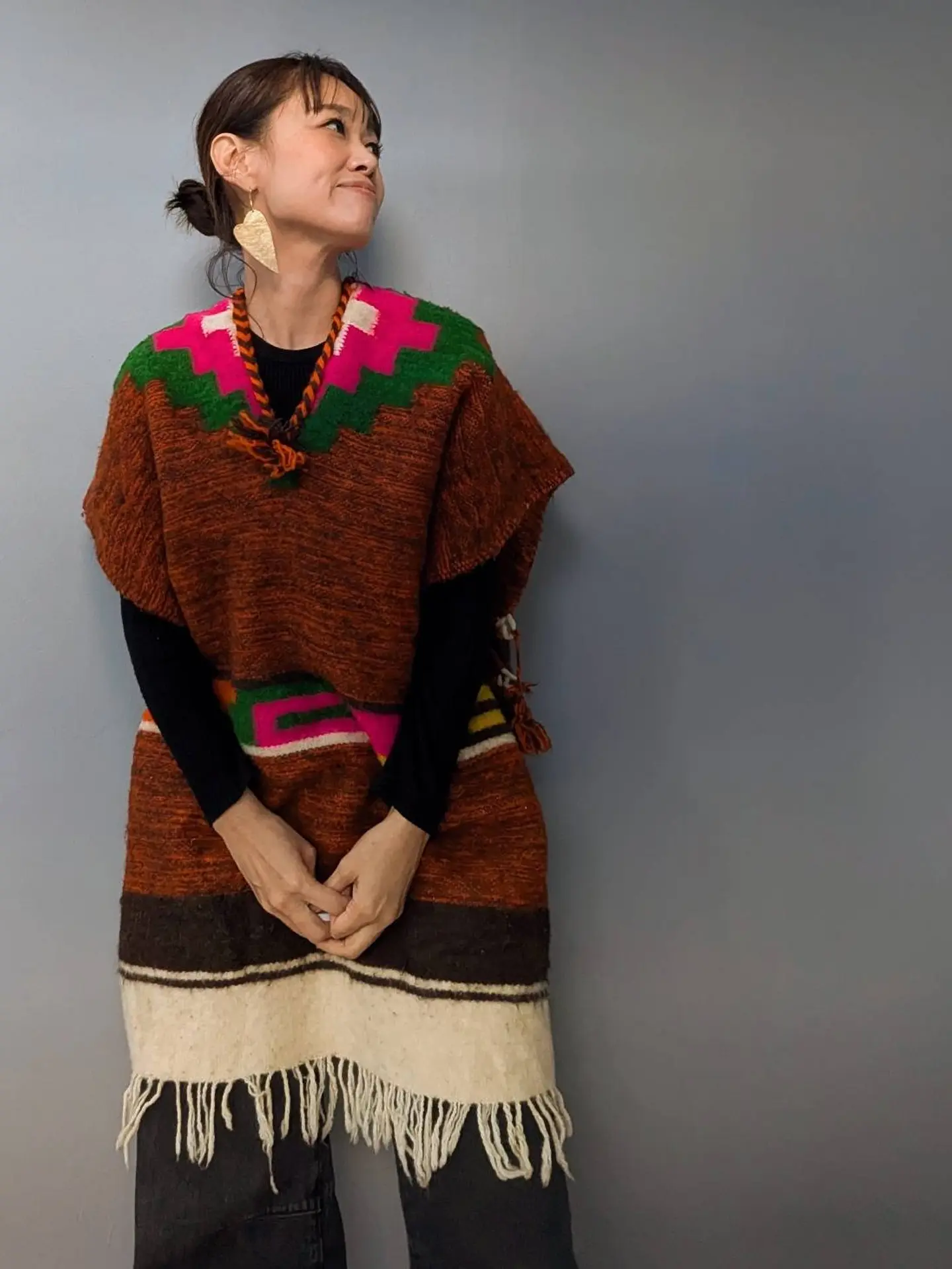 vintageラグのリメイクポンチョ wool100でぬくぬく🐑♡ storefrontpongevintage